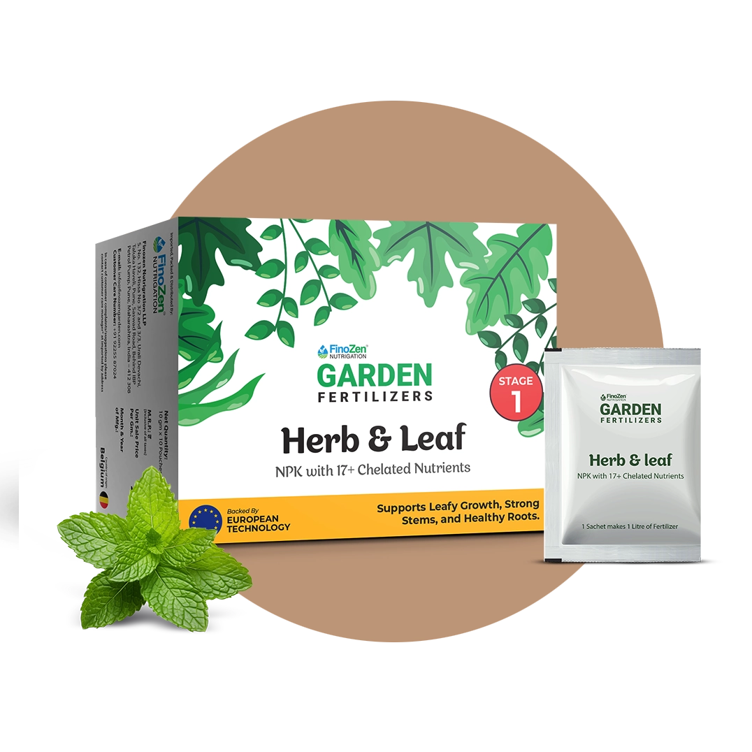 Herb & Leaf Fertilizer controls leaf yellowing, among other threats, to promote better leaf & stem growth with improved green leaves.